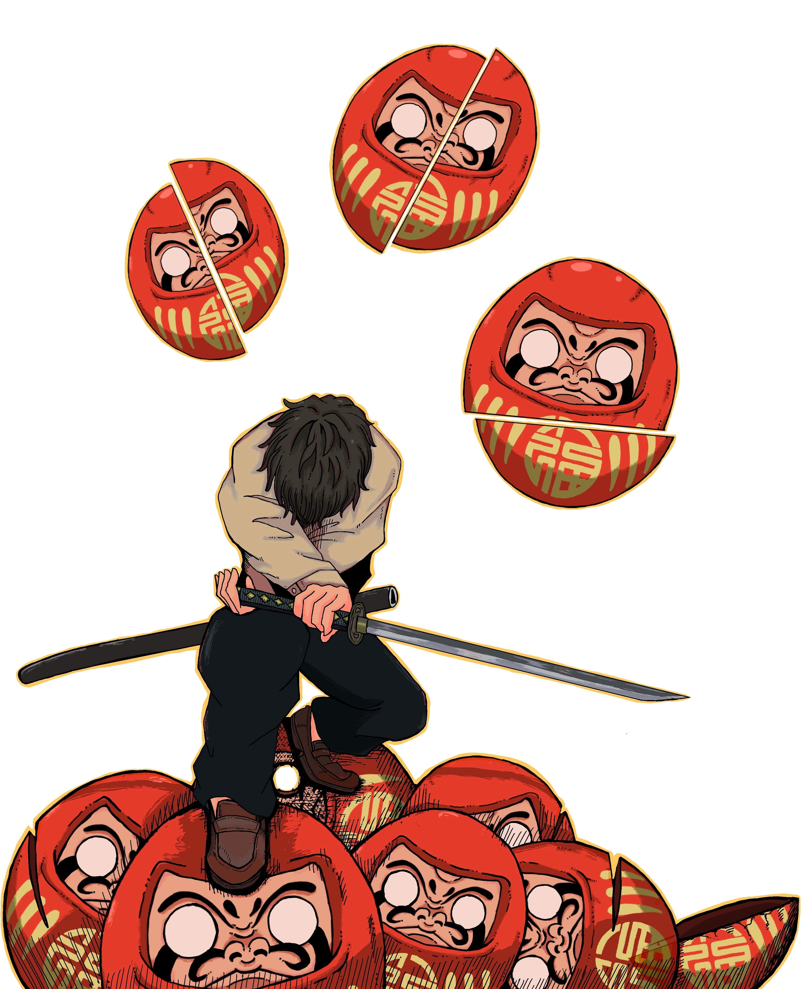 斬られた物シリーズ「達磨」ステッカーです。 サイズ63mm×74mm
